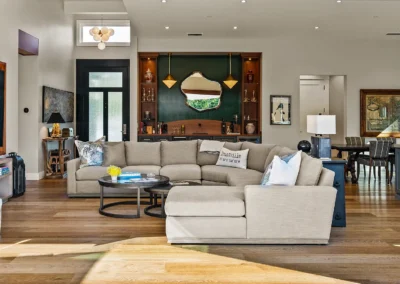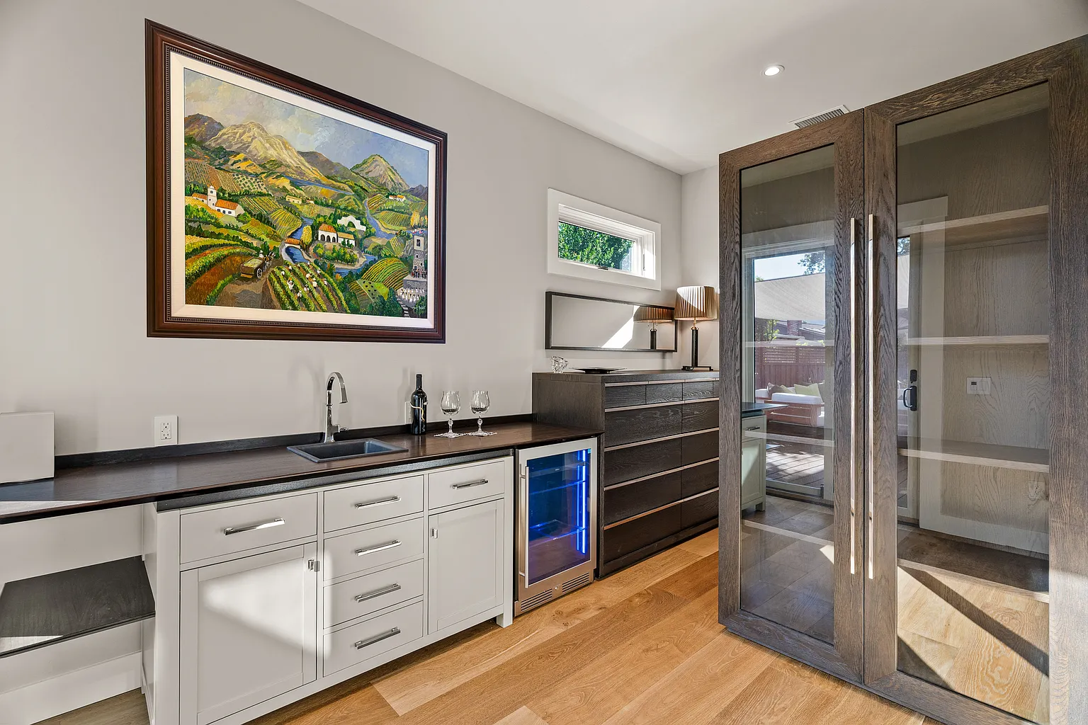 Each detail of The Mulberry Street home reflects Kenneth/Raymond’s hallmark approach: a seamless fusion of form, proportion, and material integrity. From the soaring 20-foot ceilings and custom cabinetry to the precision craftsmanship of the French oak floors and La Cantina glass wall, every element was purposefully selected to elevate everyday living.